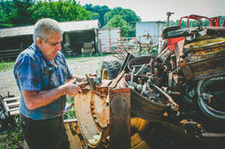 I went boonie-cruising one afternoon and saw a 70 year old man driving a homemade forklift. Nearby was a horse carriage built out of a Ford Aerostar. Here was the guy I was looking for - farmer/inventor, genius/hero. Billy Stephens of Pellville, Kentucky, the man that just might be able to build (and store) a 12 foot tall time machine complete with dual helical spirals.